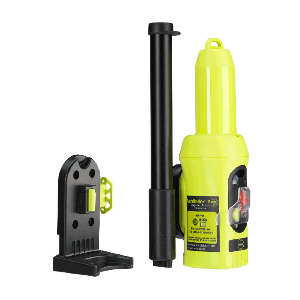 The Pathfinder Pro comes with a sleek wall mount to keep this compact SART out of the way, yet readily accessible in an emergency. Â The attached telescopic pole conveniently connects to the bottom of the SART and provides maximum height and visibility out of a life craft. The SART can also be suspended inside the craft for hands-free usage.